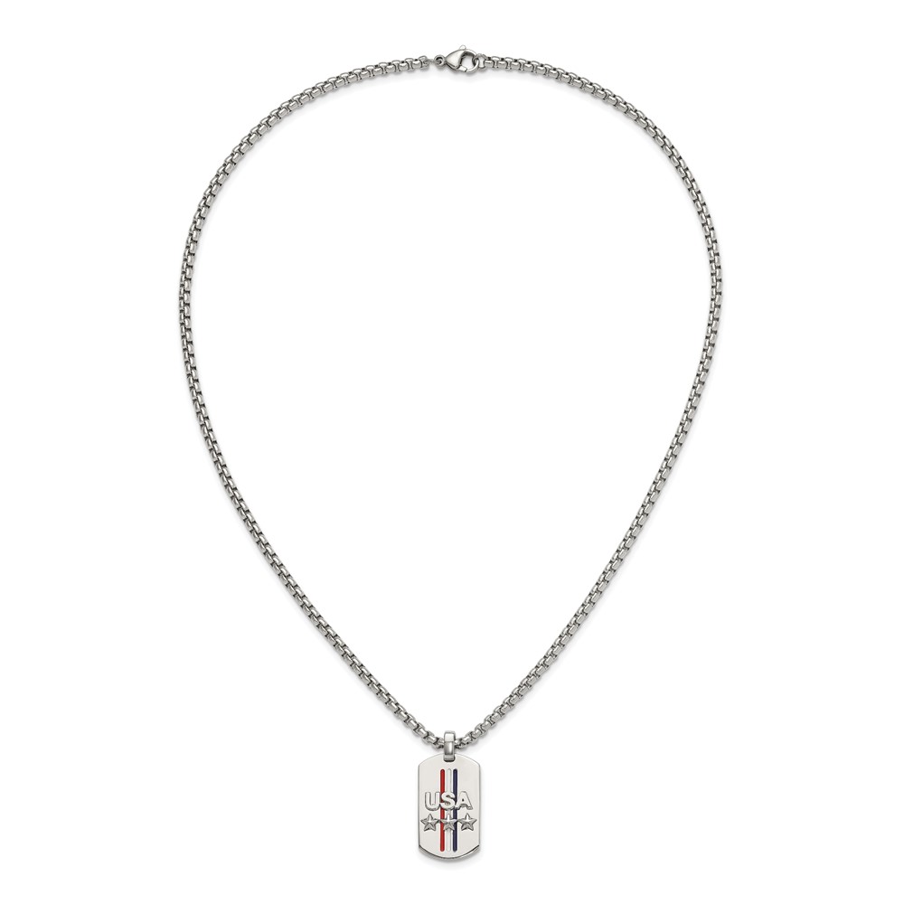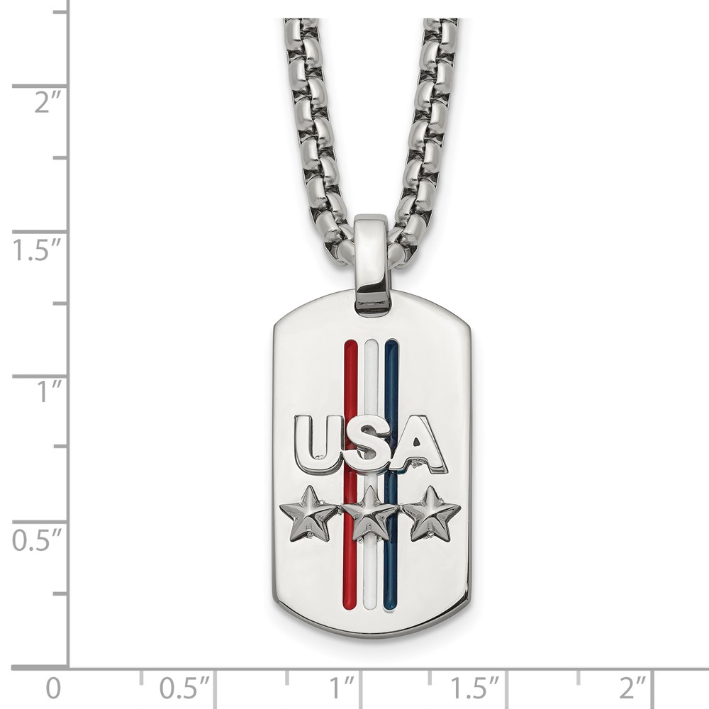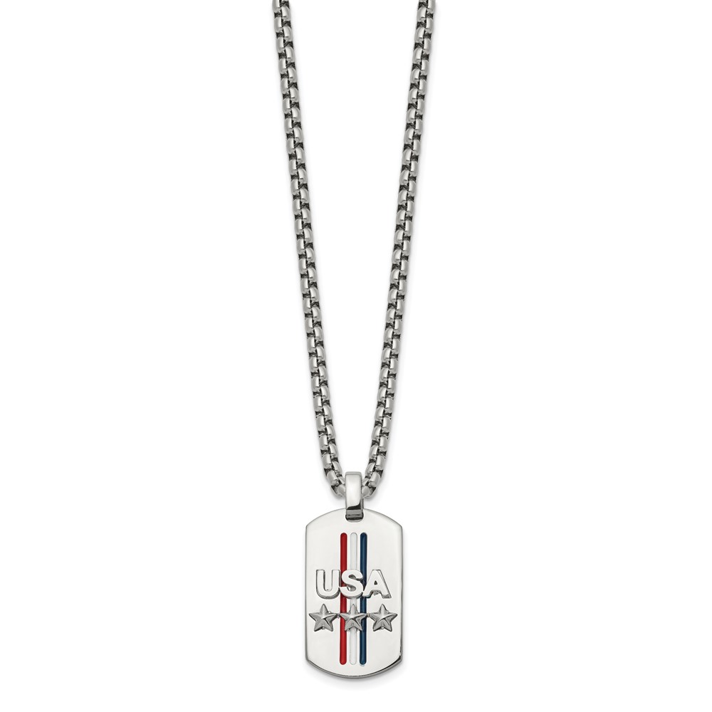 Chisel Stainless Steel Polished Enameled USA and Stars Dog Tag on a 22 inch Box Chain Necklace
