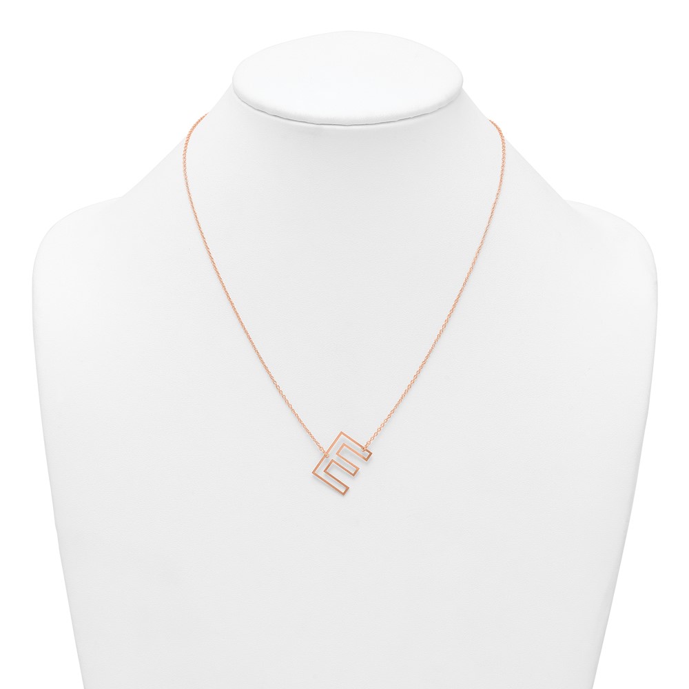 Sterling Silver/Rose Gold-Plated Sideways Cut Out Initial E Necklace