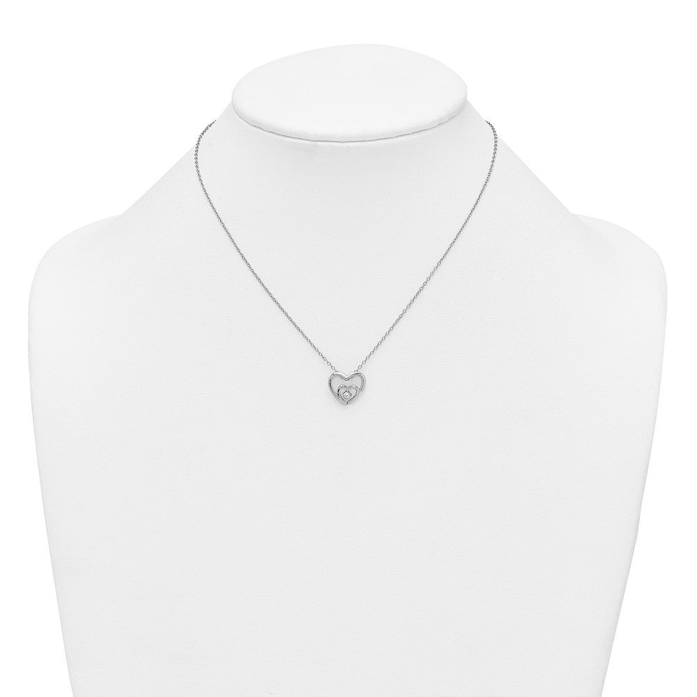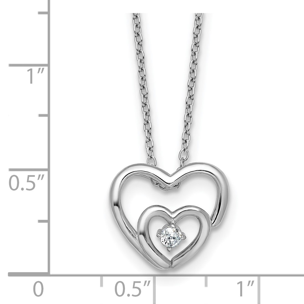 Sterling Silver Rhodium-plated Polished CZ Open Hearts 16 Inch with 2 Inch Extension Necklace