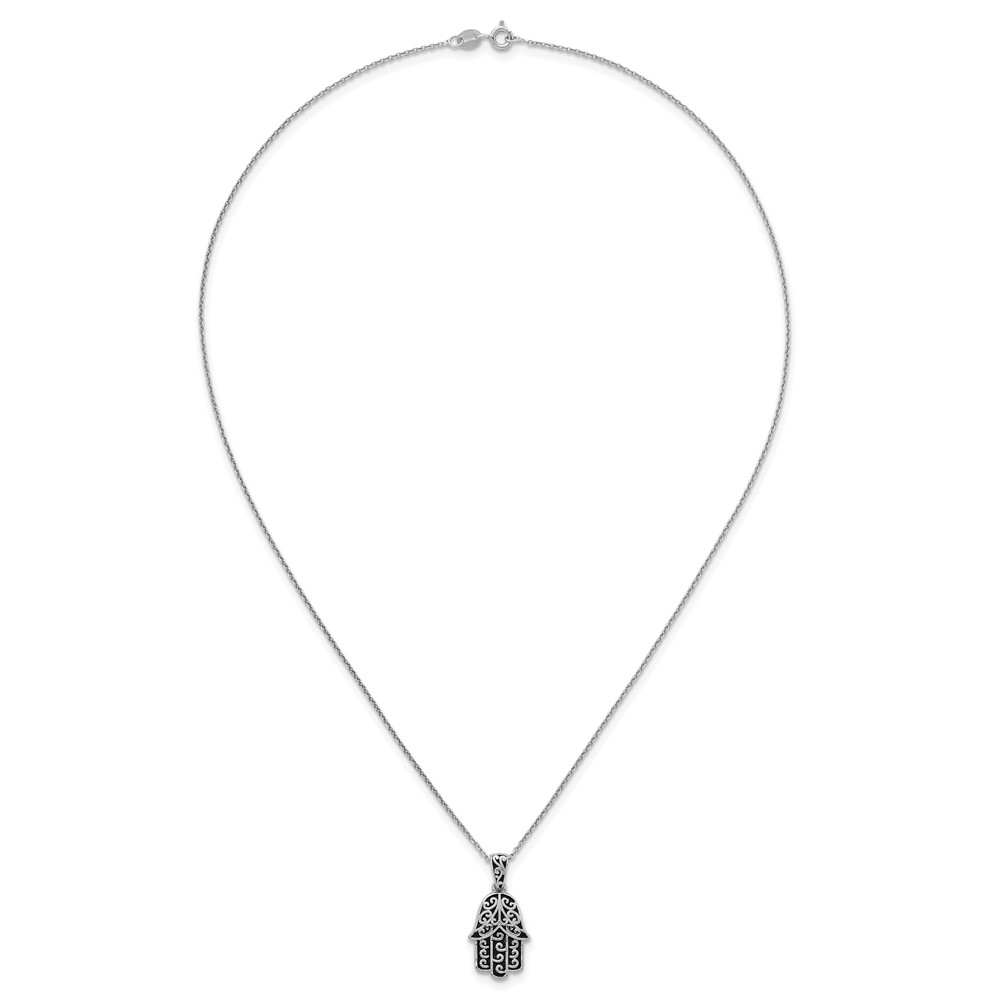 Sterling Silver Rhodium-plated Polished and Oxidized Filigree Hamsa 18 Inch Necklace