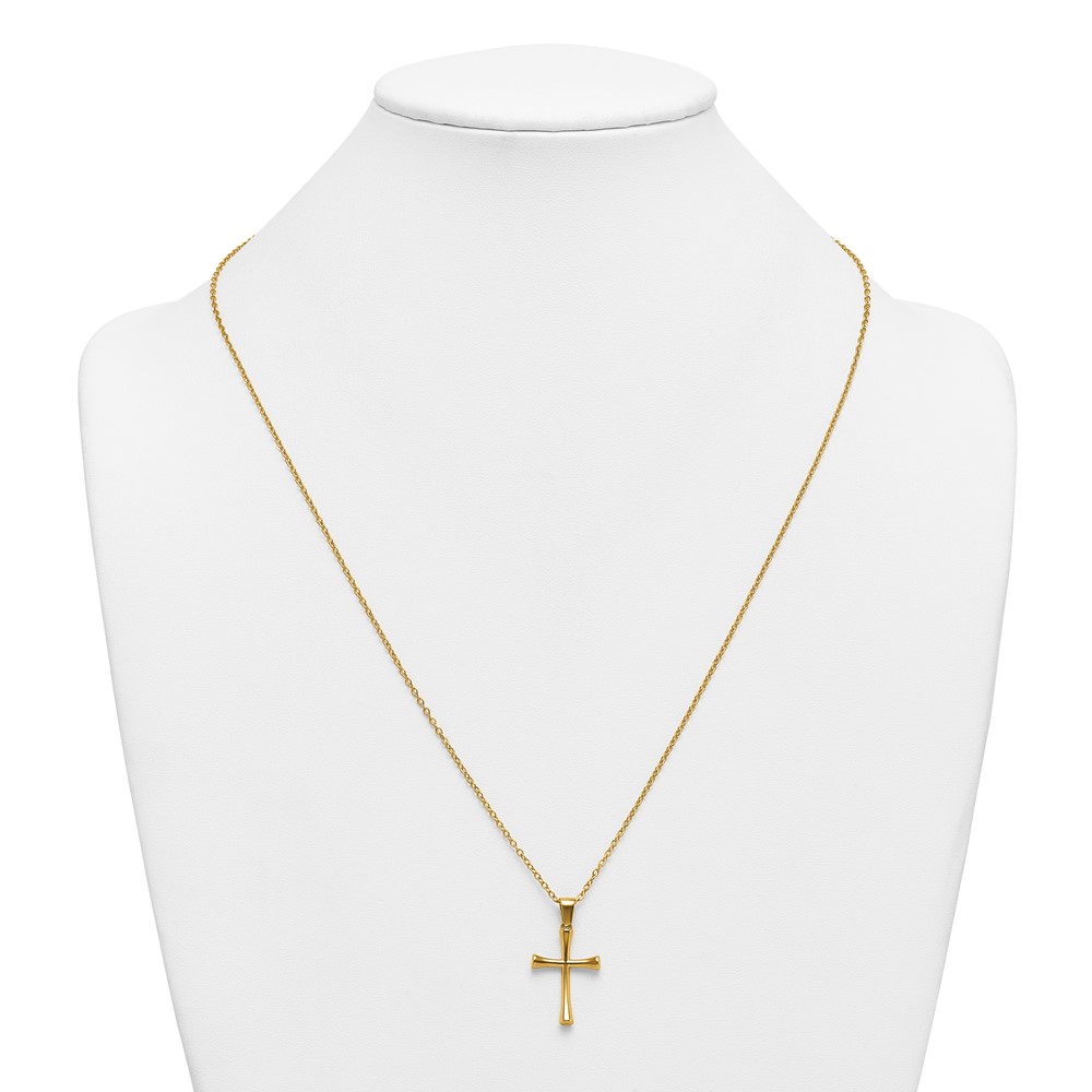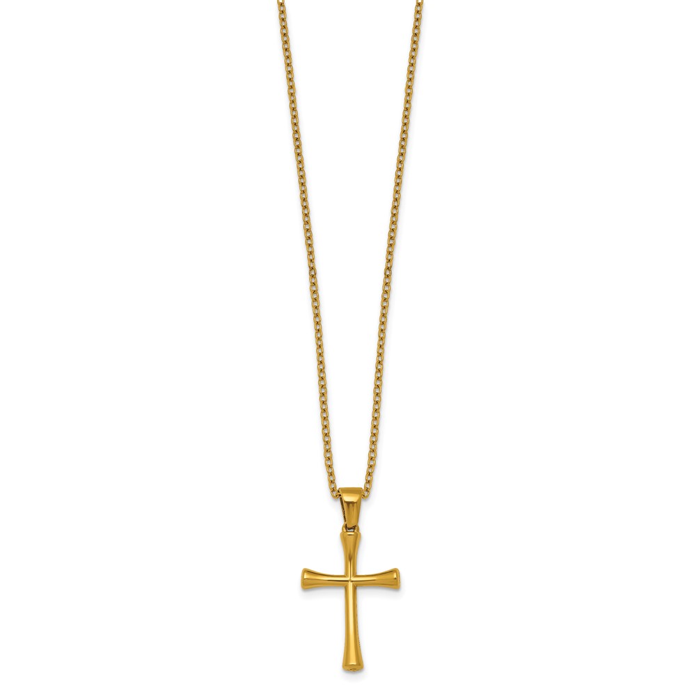 Stainless Steel Polished Yellow IP-plated 24 in w/2 in ext. Cross Necklace