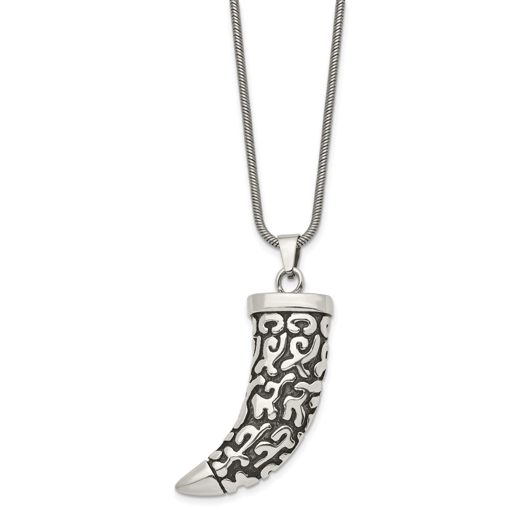 Chisel Stainless Steel Antiqued Polished and Textured Swirl Design Claw Pendant on a 24 inch Rope Chain Necklace