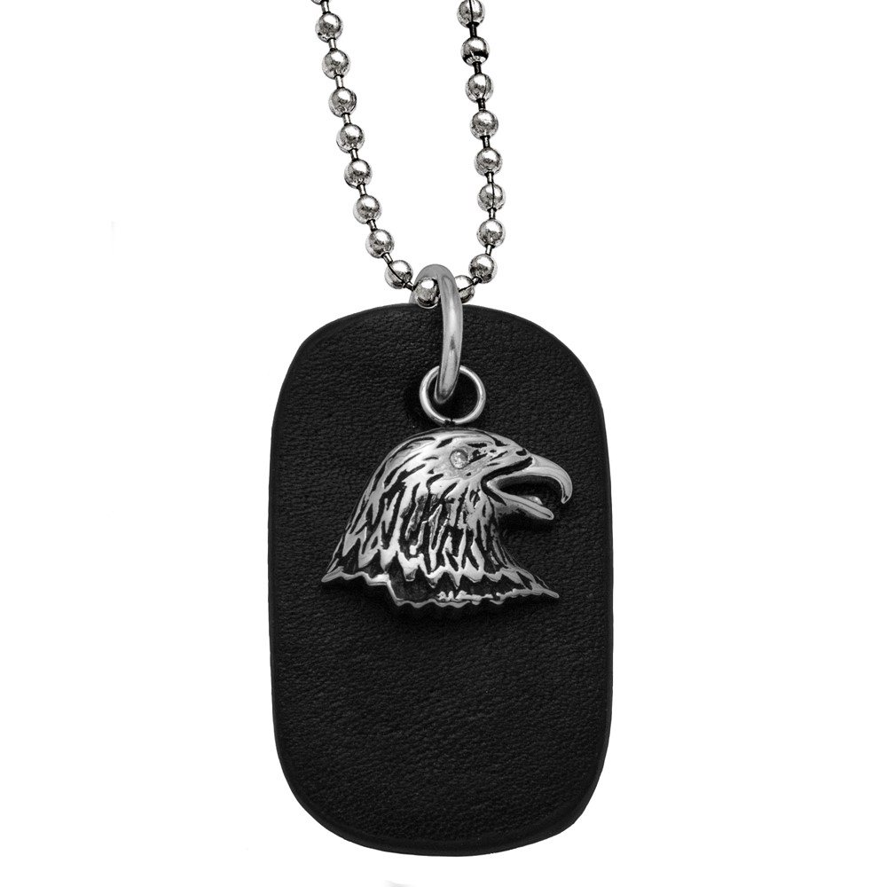 Stainless Steel Eagle on Black Leather Dog Tag on 2.4 mm 22" Bead Neckla