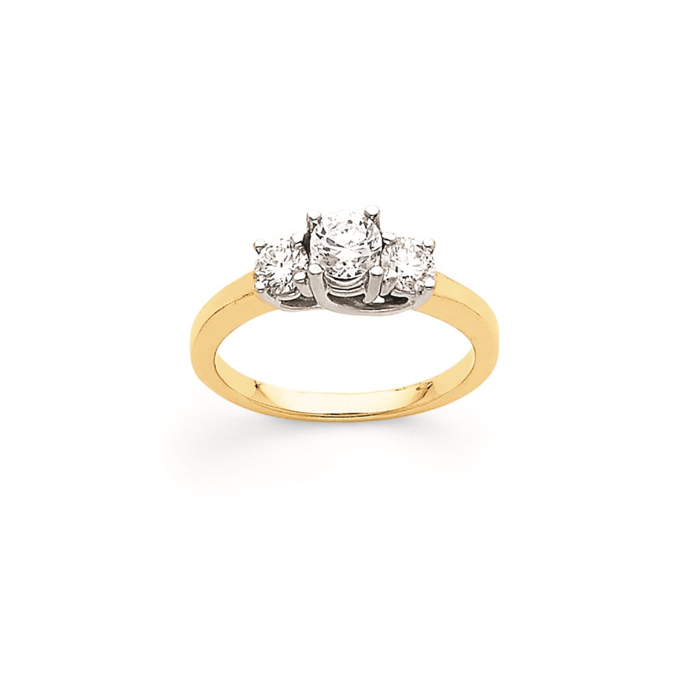 14k Two-tone AA Diamond Three Stone Ring