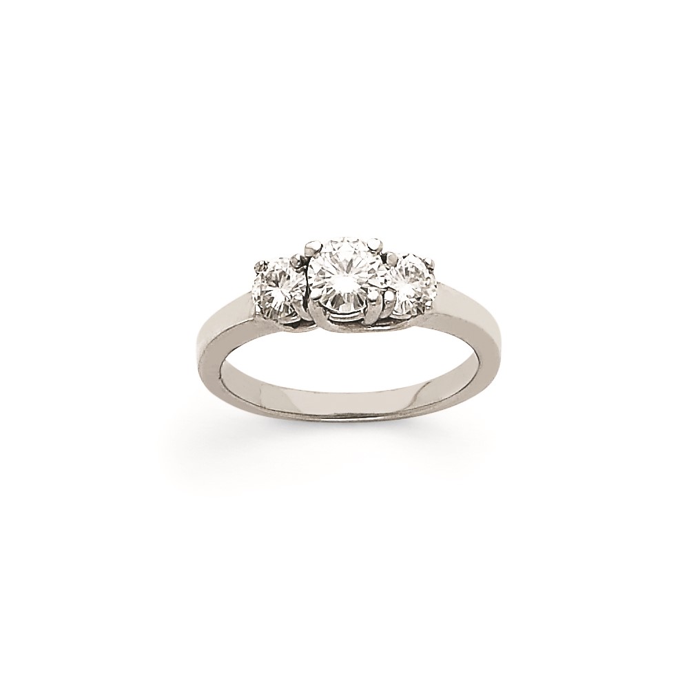 14k White Gold AA Diamond Three Stone Ring
