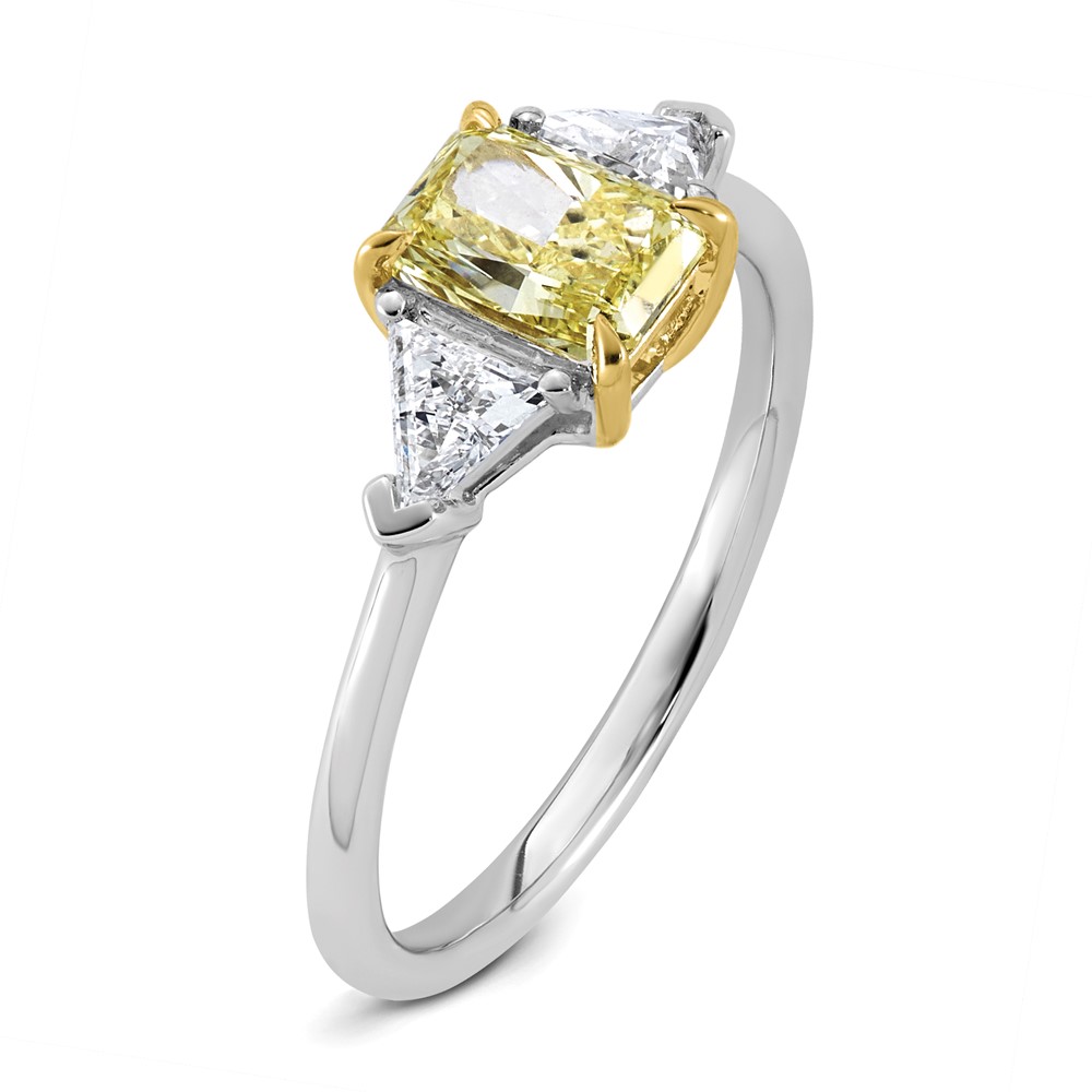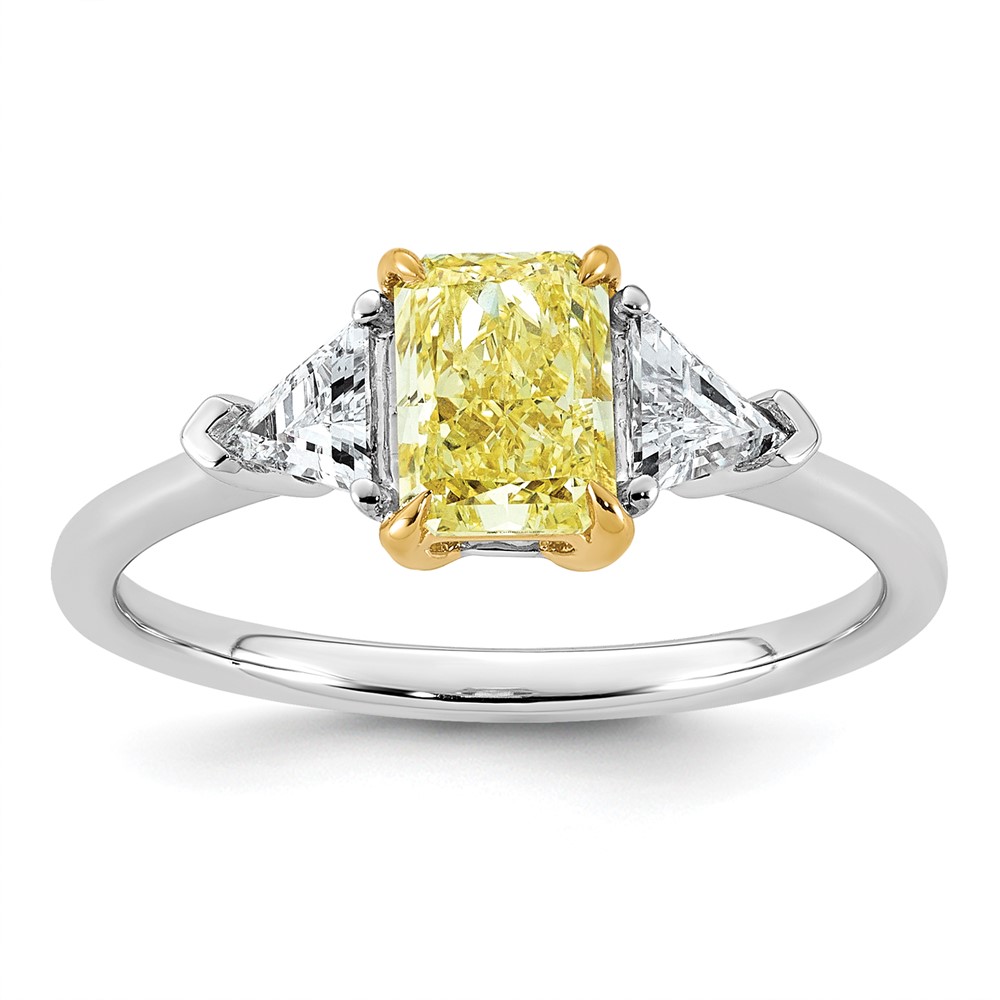 Emma Grace 14K Two-Tone 1 1/2 carat Certified Lab Grown Diamond VS+ Radiant Vivid Yellow & VS+ F+ Trillion Complete Ring
