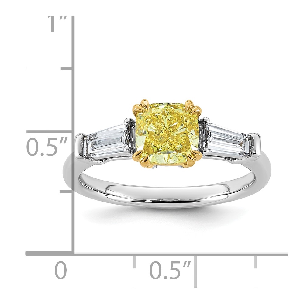 Emma Grace 14K Two-Tone 2 carat Certified Lab Grown Diamond VS+ Cushion Vivid Yellow & VS+ F+ Baguette Complete Ring
