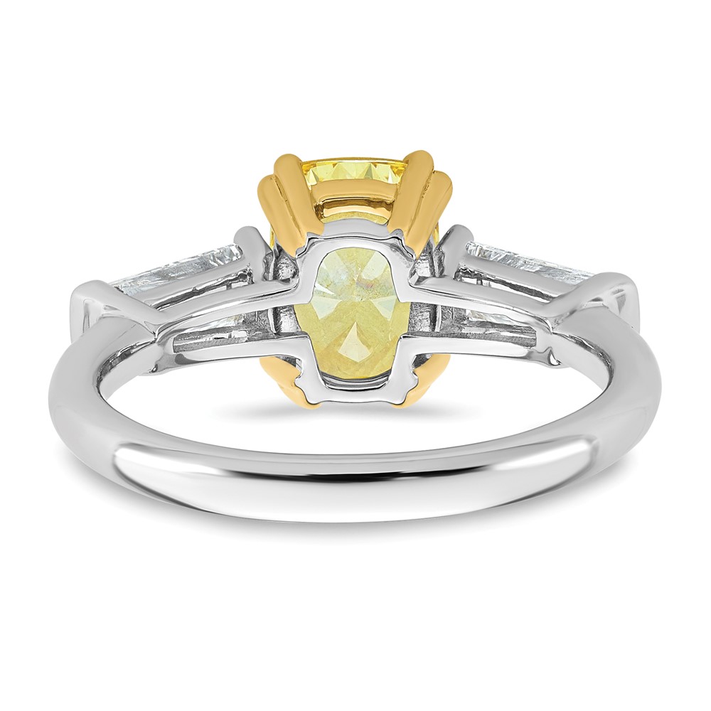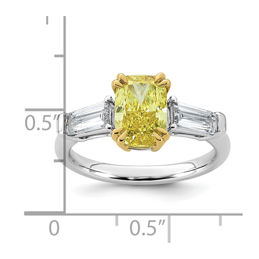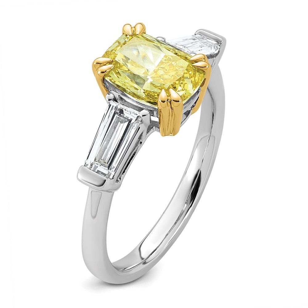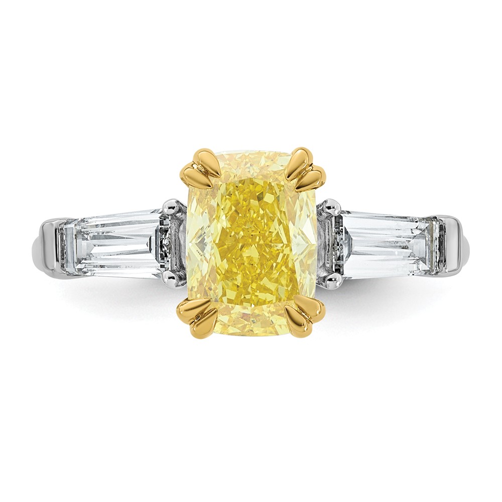 Emma Grace 14K Two-Tone 2 3/4 carat Certified Lab Grown Diamond VS+ Long Cushion Vivid Yellow & VS+ F+ Baguette Complete Ring