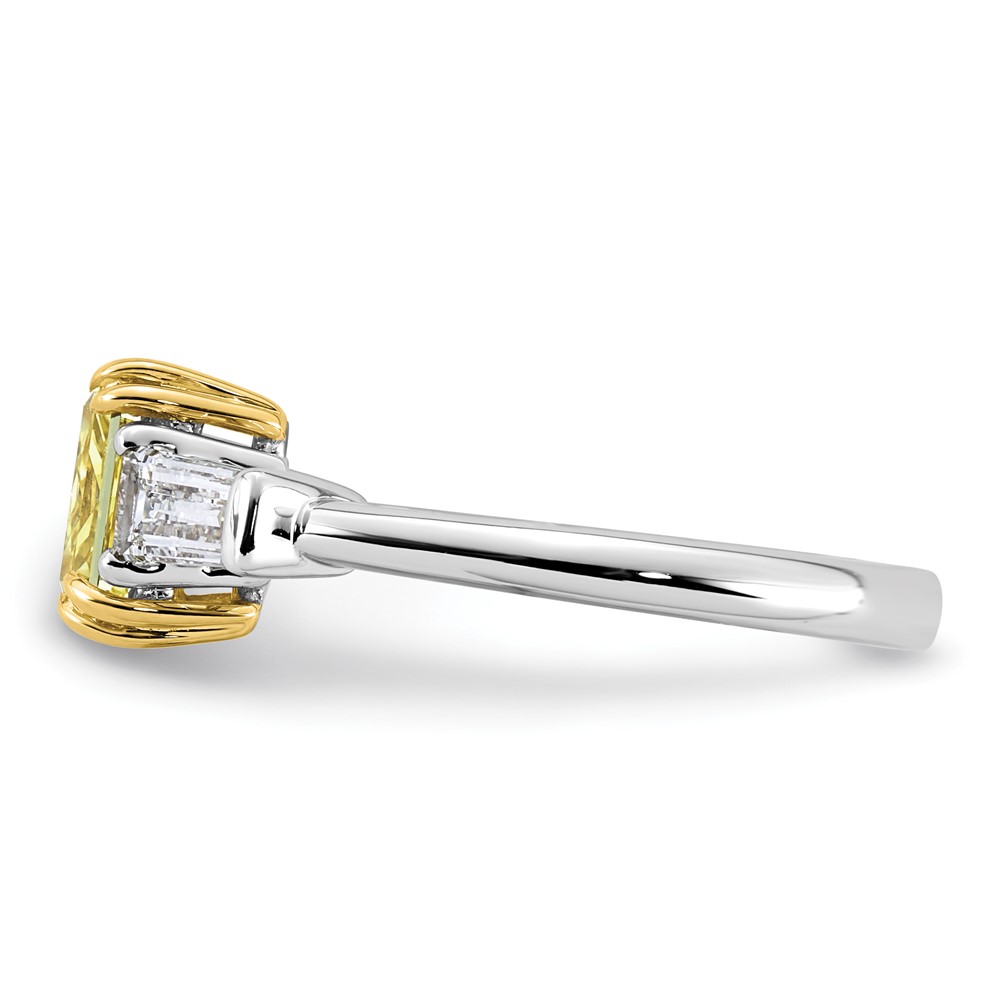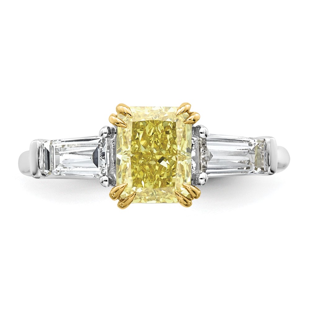 Emma Grace 14K Two-Tone 2 1/5 carat Certified Lab Grown Diamond VS+ Radiant Vivid Yellow & VS+ F+ Baguette Complete Ring