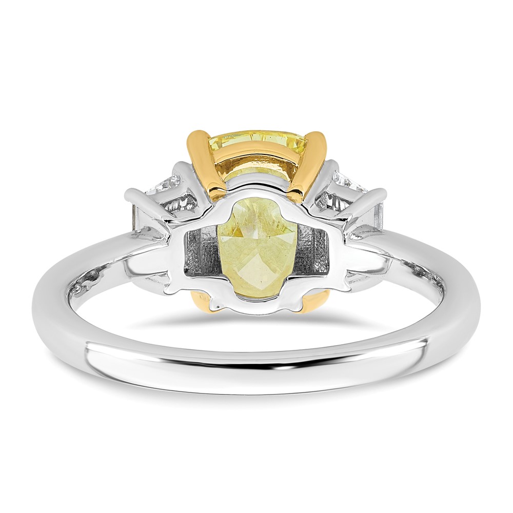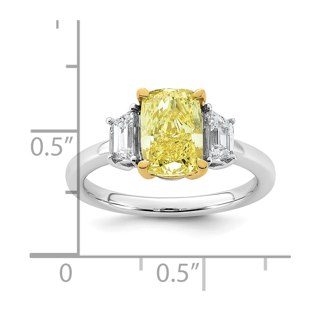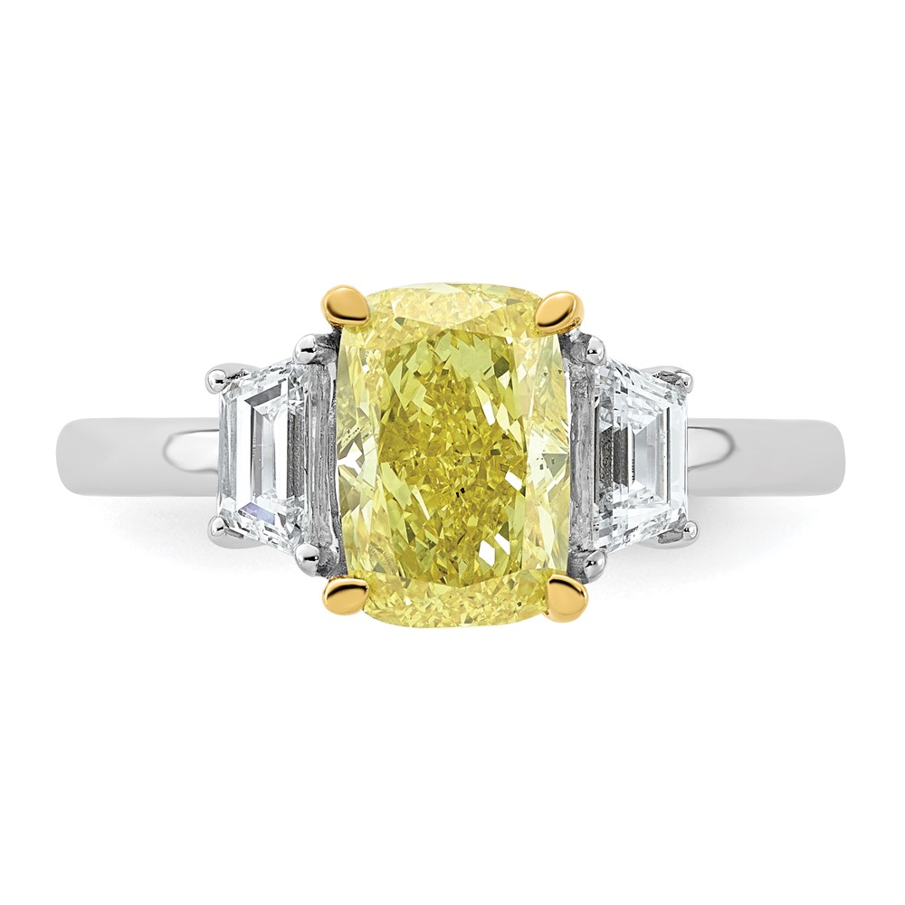 Emma Grace 14K Two-Tone 2 1/2 carat Certified Lab Grown Diamond VS+ Long Cushion Vivid Yellow & VS+ F+ Trapezoid Complete Ring