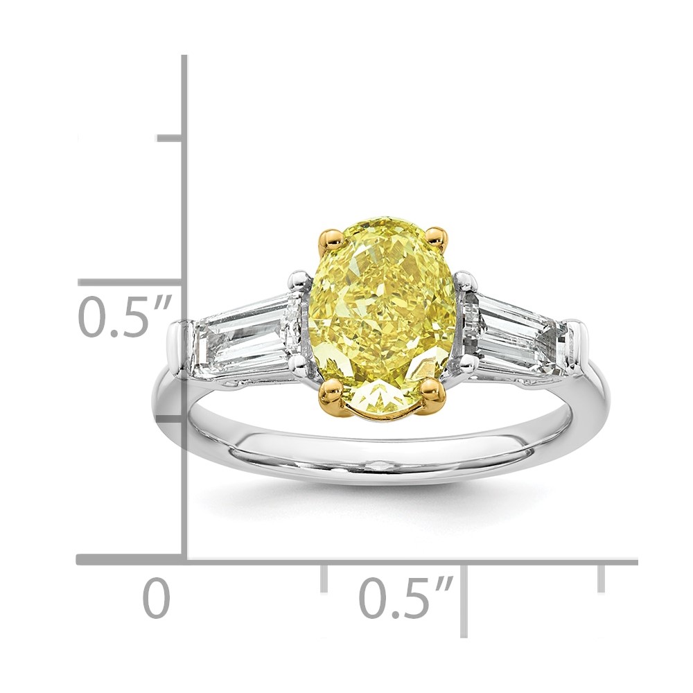 Emma Grace 14K Two-Tone 2 3/4 carat Certified Lab Grown Diamond VS+ Oval Vivid Yellow & VS+ F+ Baguette Complete Ring