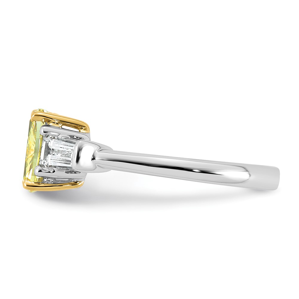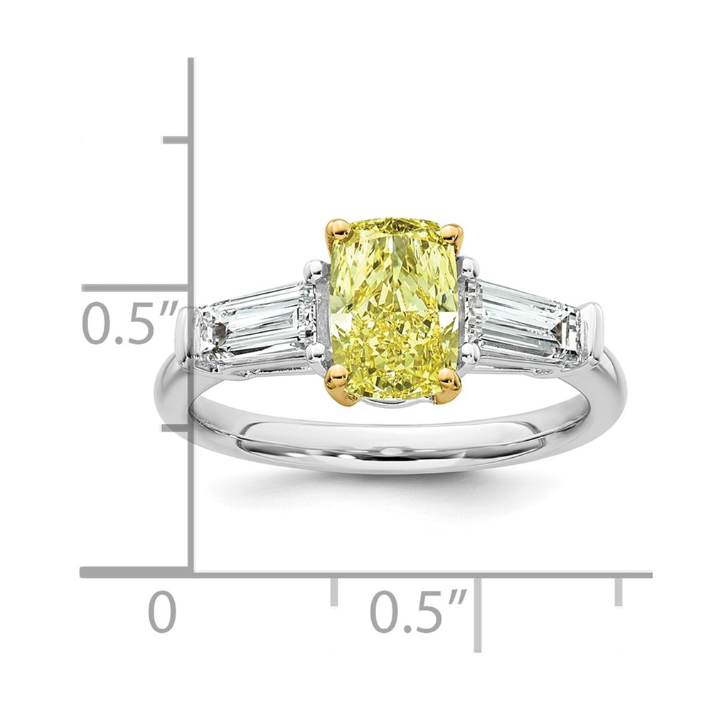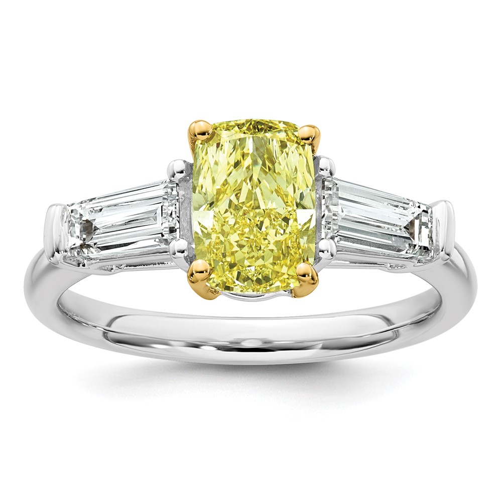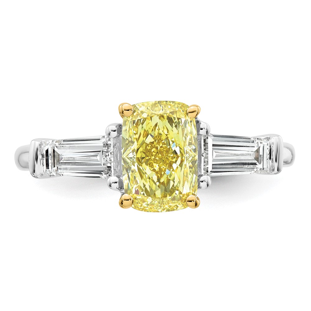 Emma Grace 14K Two-Tone 2 1/4 carat Certified Lab Grown Diamond VS+ Long Cushion Vivid Yellow & VS+ F+ Baguette Complete Ring