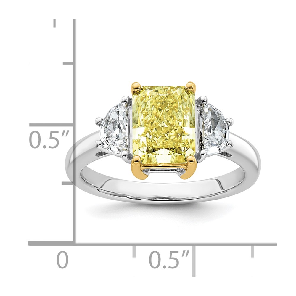 Emma Grace 14K Two-Tone 3 1/4 carat Certified Lab Grown Diamond VS+ Radiant Vivid Yellow & VS+ F+ Half Moon Complete Ring