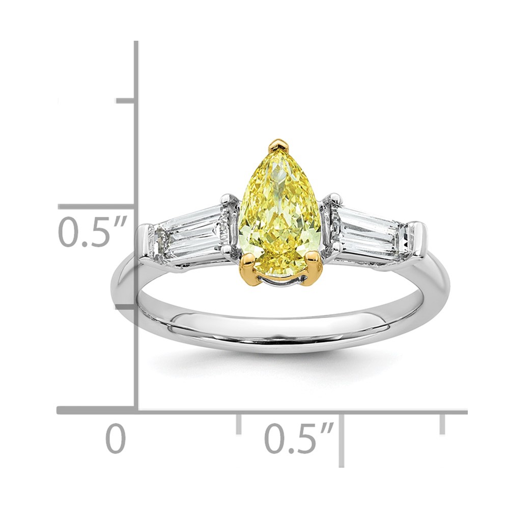 Emma Grace 14K Two-Tone 1 5/8 carat Certified Lab Grown Diamond VS+ Pear Vivid Yellow & VS+ F+ Baguette Complete Ring