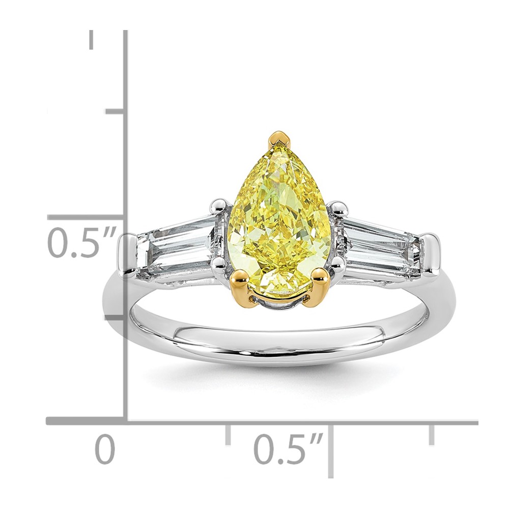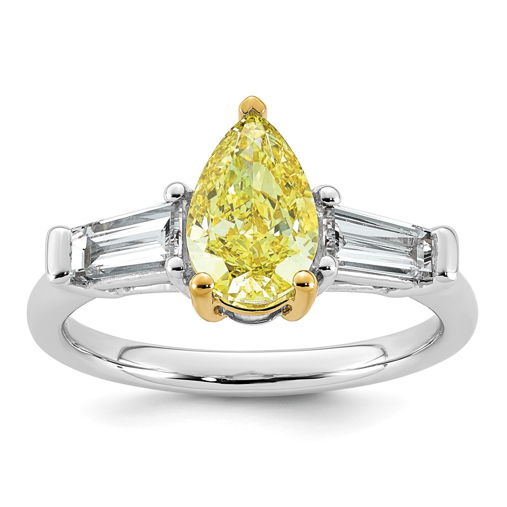 Emma Grace 14K Two-Tone 2 1/4 carat Certified Lab Grown Diamond VS+ Pear Vivid Yellow & VS+ F+ Baguette Complete Ring