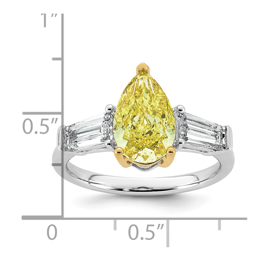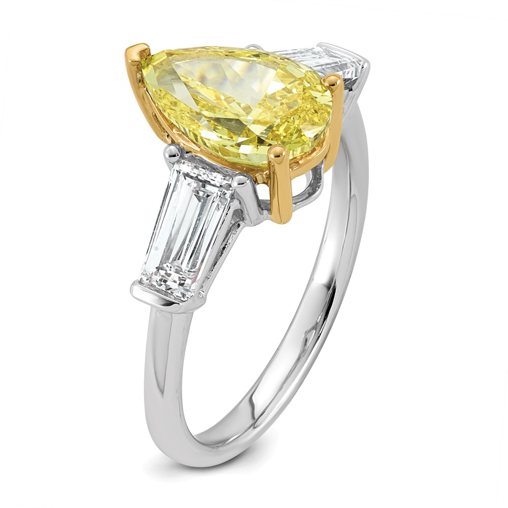 Emma Grace 14K Two-Tone 3 1/2 carat Certified Lab Grown Diamond VS+ Pear Vivid Yellow & VS+ F+ Baguette Complete Ring