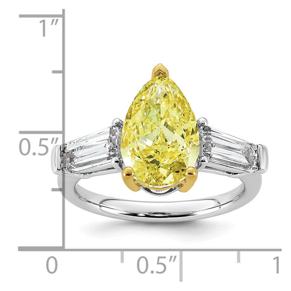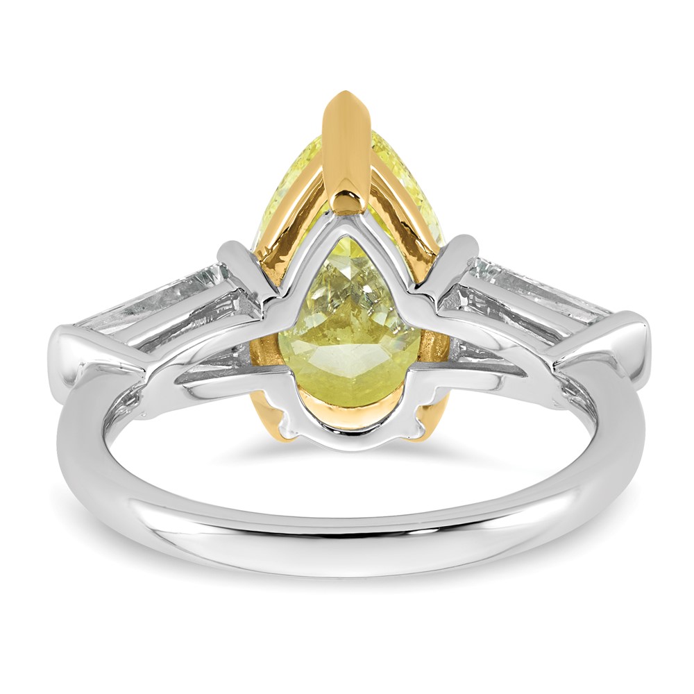 Emma Grace 14K Two-Tone 4 7/8 carat Certified Lab Grown Diamond VS+ Pear Vivid Yellow & VS+ F+ Baguette Complete Ring