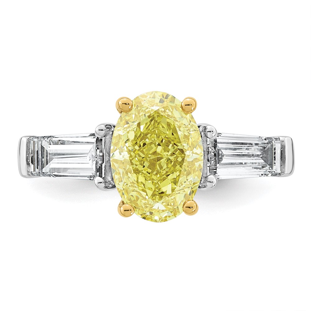 Emma Grace 14K Two-Tone 4 1/2 carat Certified Lab Grown Diamond VS+ Oval Vivid Yellow & VS+ F+ Baguette Complete Ring