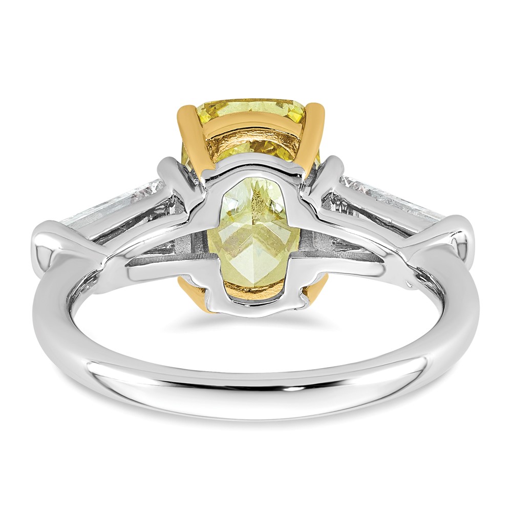 Emma Grace 14K Two-Tone 4 1/3 carat Certified Lab Grown Diamond VS+ Long Cushion Vivid Yellow & VS+ F+ Baguette Complete Ring