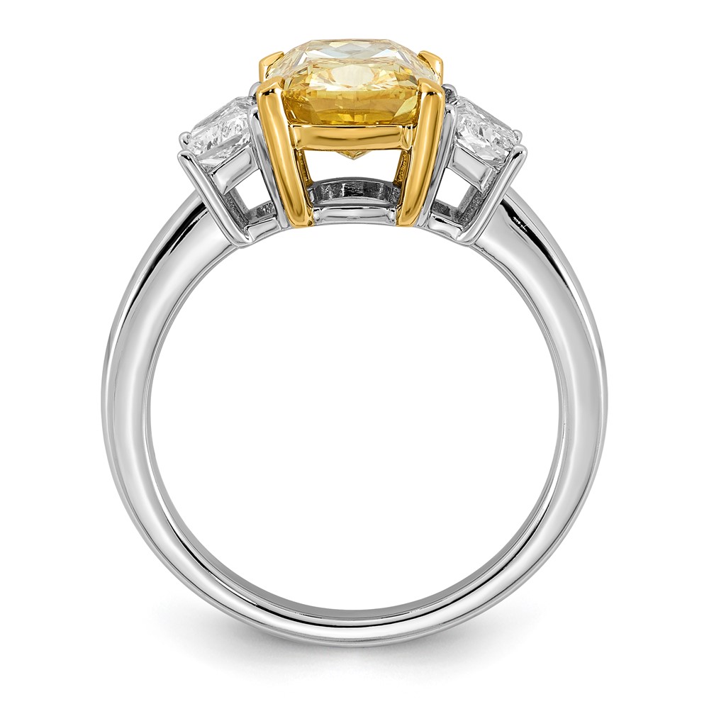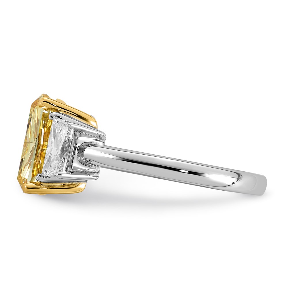 Emma Grace 14K Two-Tone 3 7/8 carat Certified Lab Grown Diamond VS+ Long Cushion Vivid Yellow & VS+ F+ Trapezoid Complete Ring