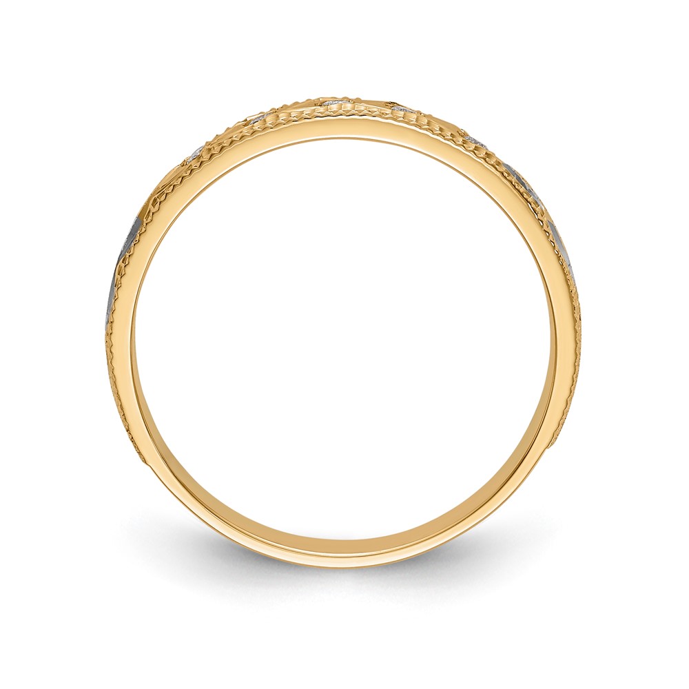 14k and Rhodium AA Quality 1/20 carat Diamond Trio Ladies Complete Wedding Band