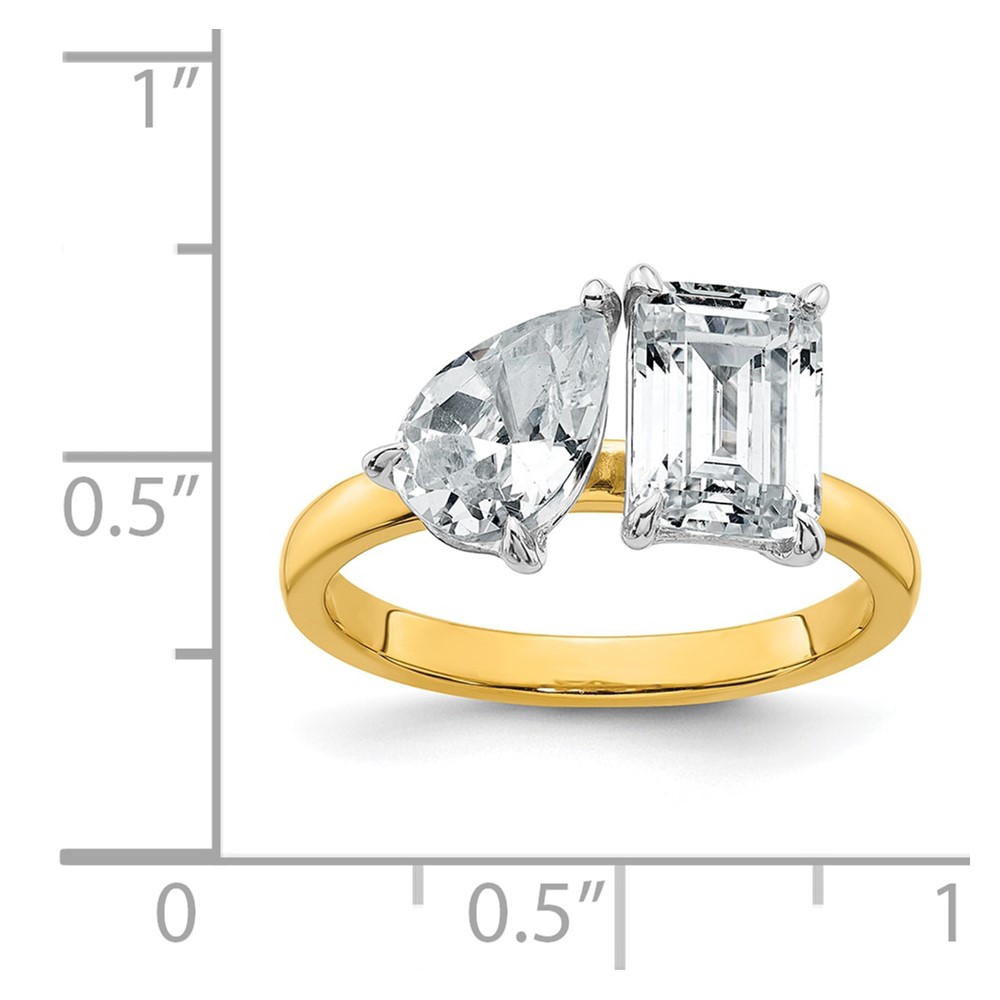 True Origin 14K Yellow Gold 2 7/8 carat Lab Grown Diamond VS+ F+ Complete Pear and Emerald Two Stone Ring