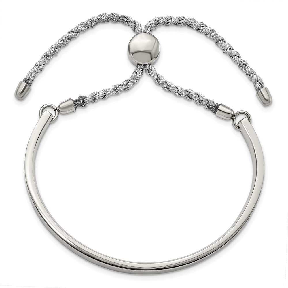Chisel Stainless Steel Polished Bar Adjustable Fabric Cord Bangle Bracelet