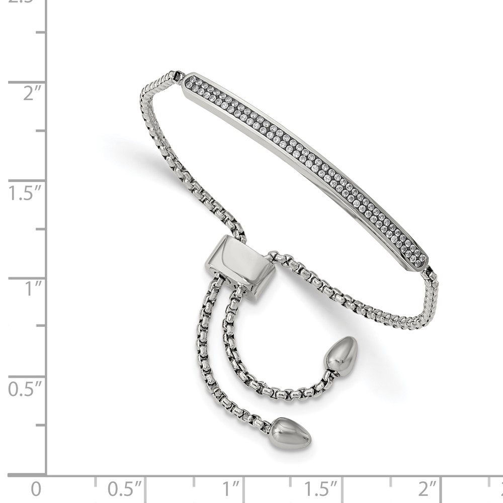 Chisel Stainless Steel Polished with 2 Row CZ Bar Friendship/Bolo Adjustable Bracelet