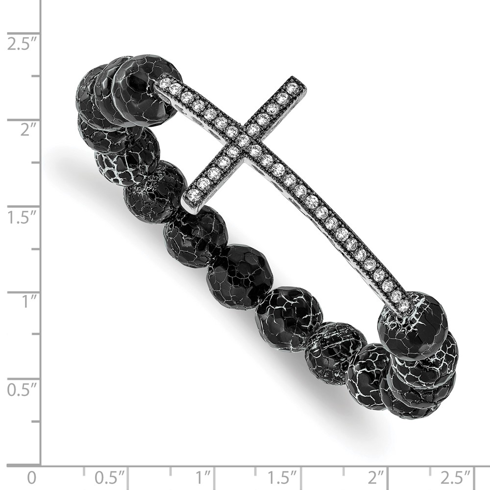 Belle Amore Ss Cz Cross With Fac Agate Stretch Bracelet