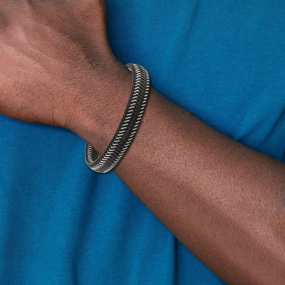 Chisel Stainless Steel Polished Braided Wire and Black Leather Adjustable 8 to 8.5 inch Bracelet