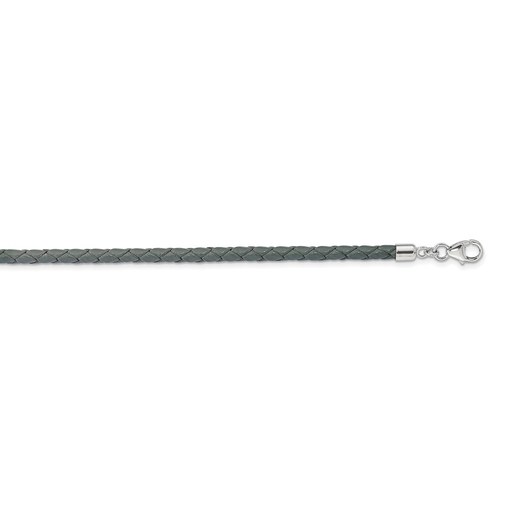 Sterling Silver Reflections Gray Leather Rhodium-plated 14 inch with a 2 inch extention Choker/Wrap Bracelet