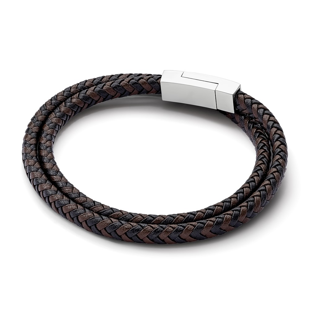 Chisel Stainless Steel Polished Black and Brown Braided Leather 15.75 inch Wrap Bracelet