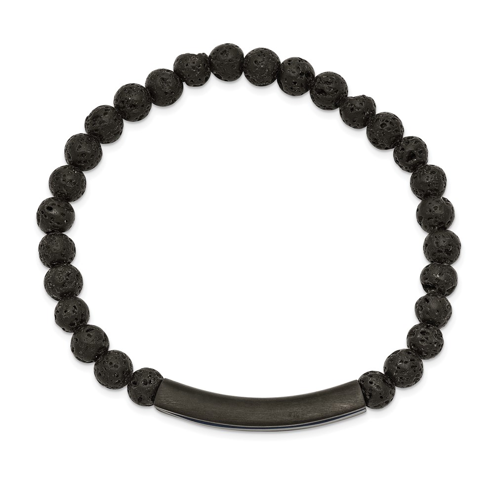 Chisel Stainless Steel Brushed and Polished Black and Blue IP-plated with 6mm Lava Stone Beaded Stretch Bracelet