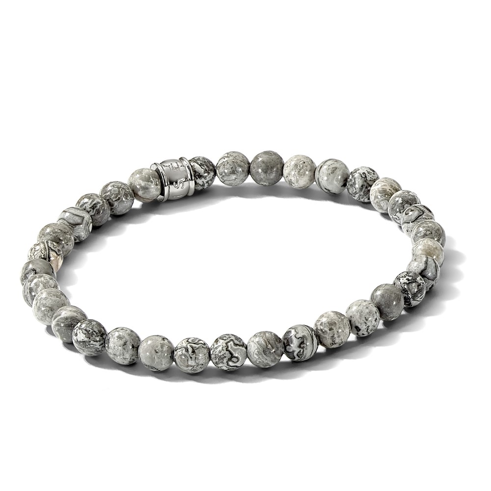Chisel Stainless Steel Polished 6mm Grey Jasper Beaded Stretch Bracelet