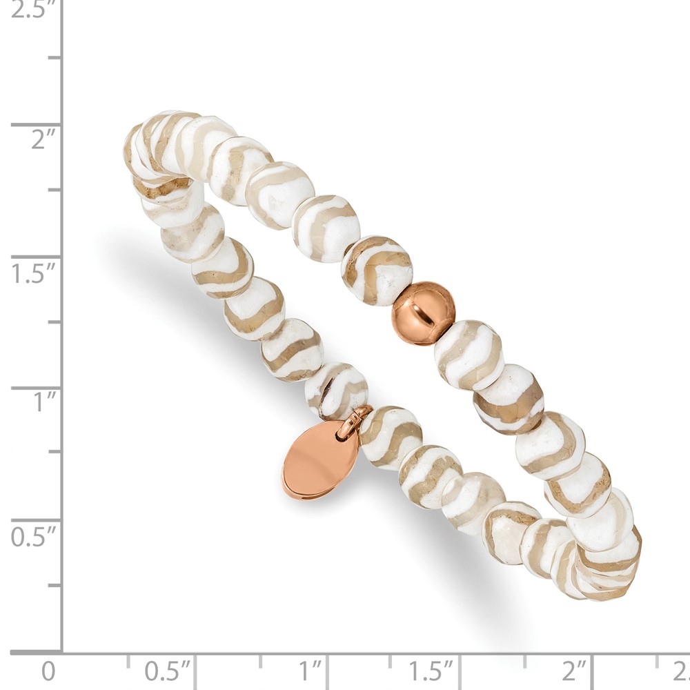 Chisel Stainless Steel Polished Rose IP-plated 6mm White Wave Agate Beaded Stretch Bracelet