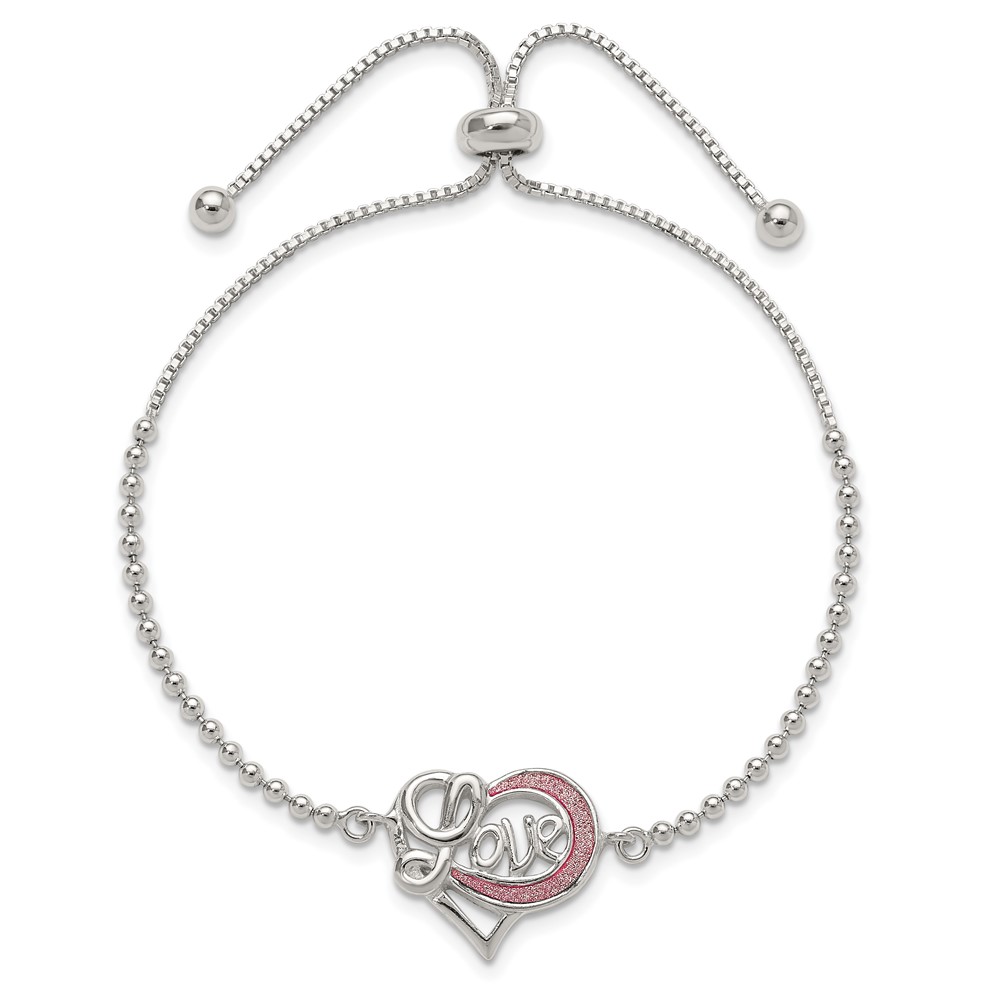 Sterling Silver Glitter Infused Infinity LOVE Adjustable Bracelet