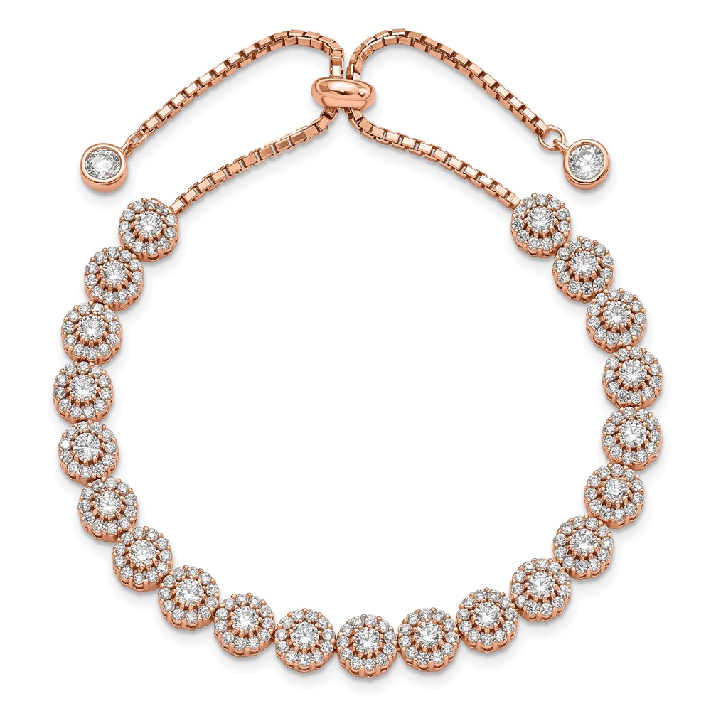 Sterling Silver Rose-tone CZ Halo Adjustable Bracelet