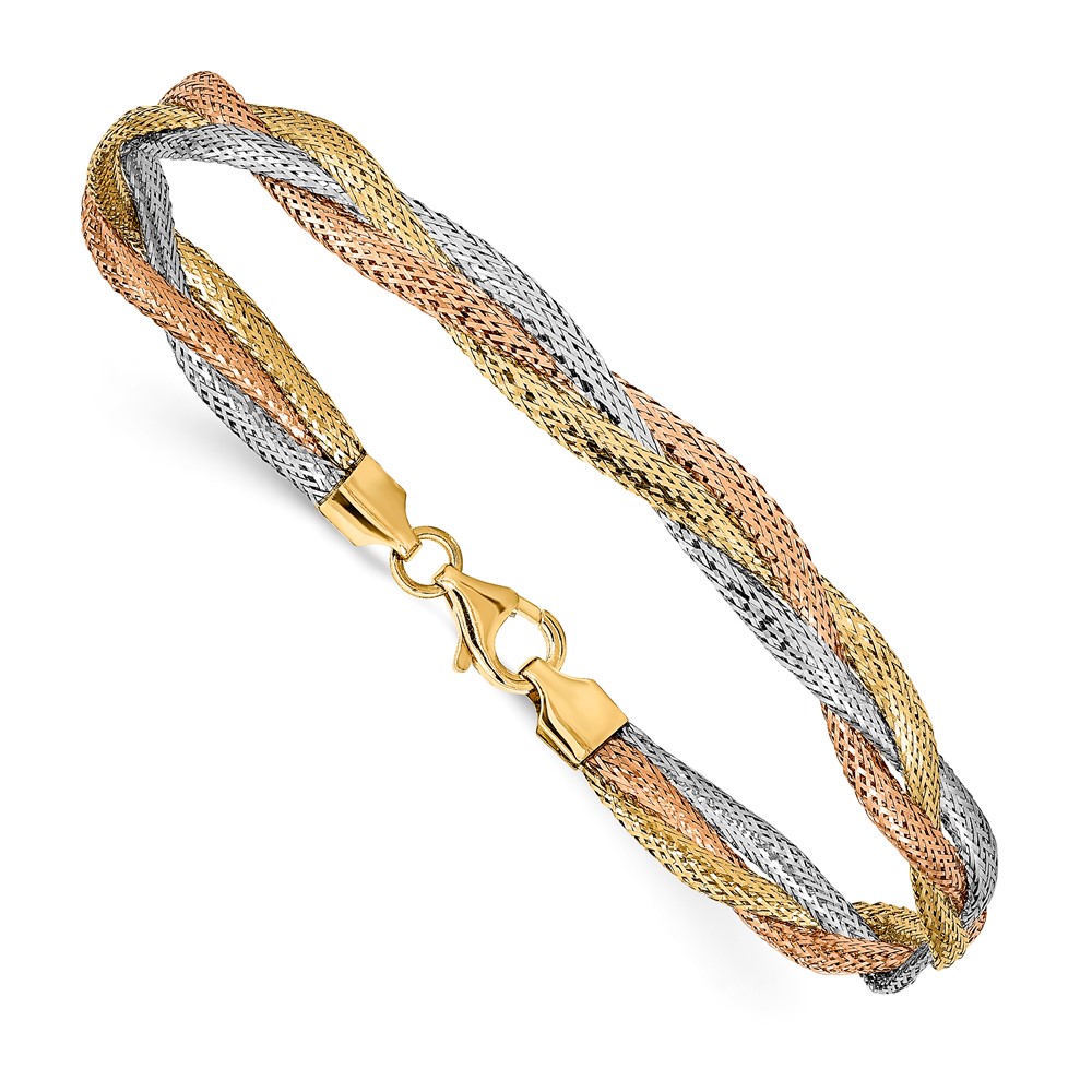 Leslie's 14k w/ Wht Rhodium and Rose Gold-plating Stretch Bracelet