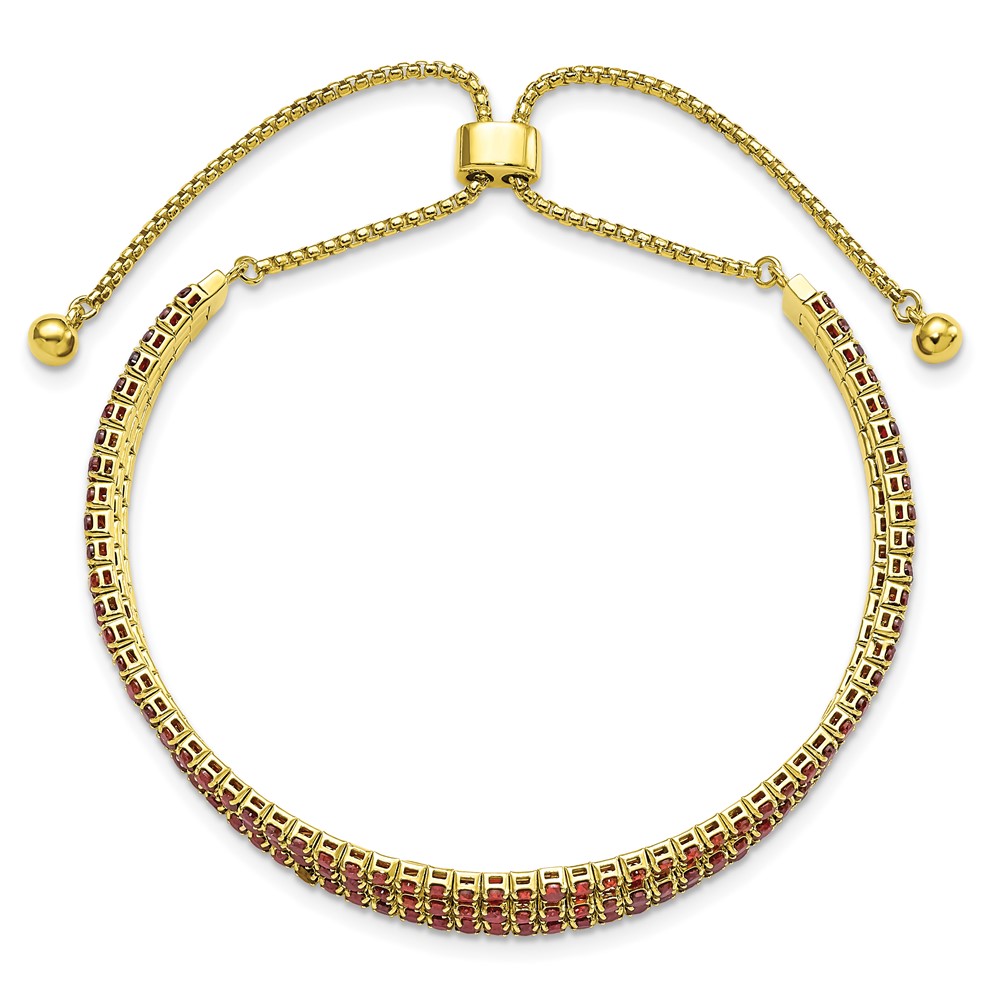 SS Gold-tone January Red Triple CZ Adjustable Bracelet