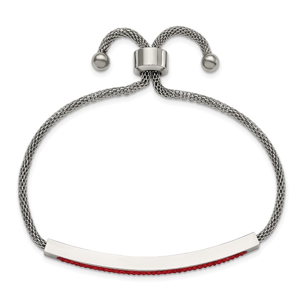 Chisel Stainless Steel Polished with Red Glass Adjustable Bracelet