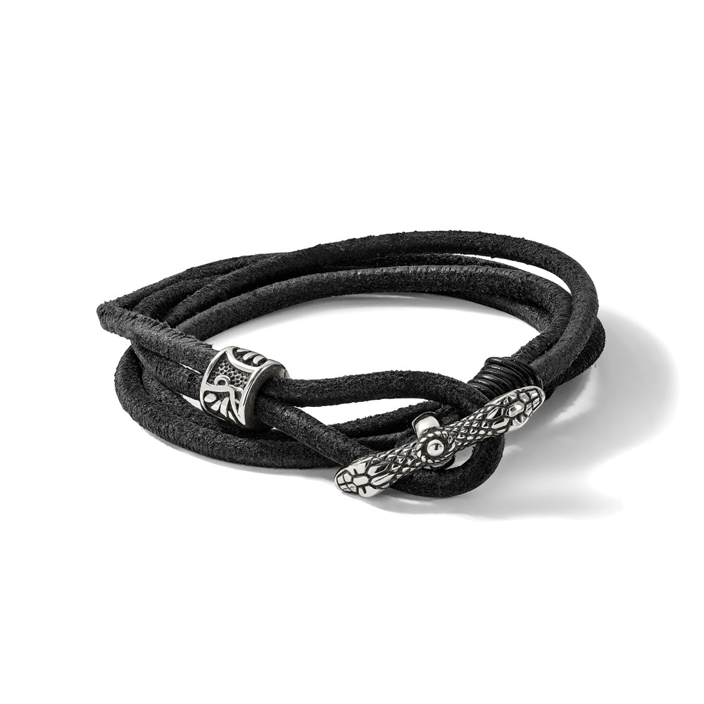 Chisel Stainless Steel Antiqued and Polished Snake Heads Black Suede 16.5 inch Wrap Bracelet