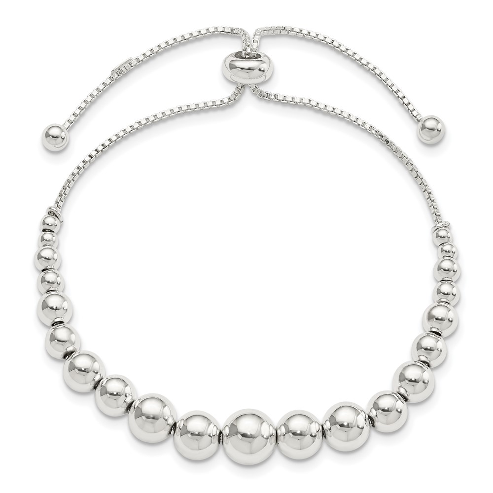 Sterling Silver Polished Beaded Adjustable Bracelet