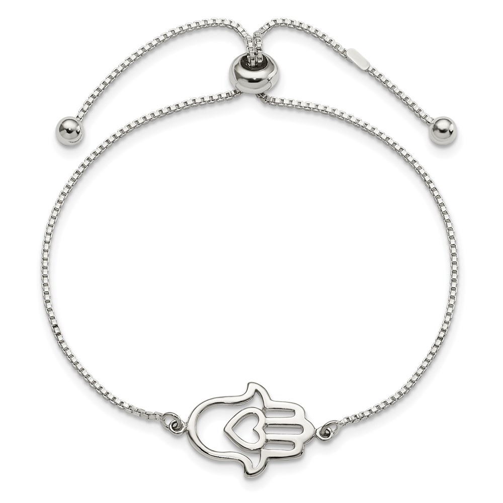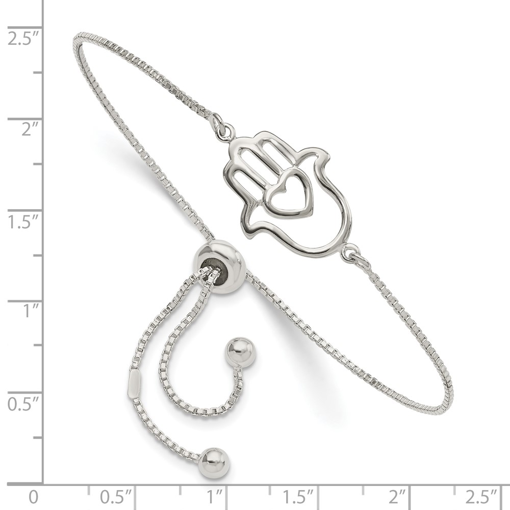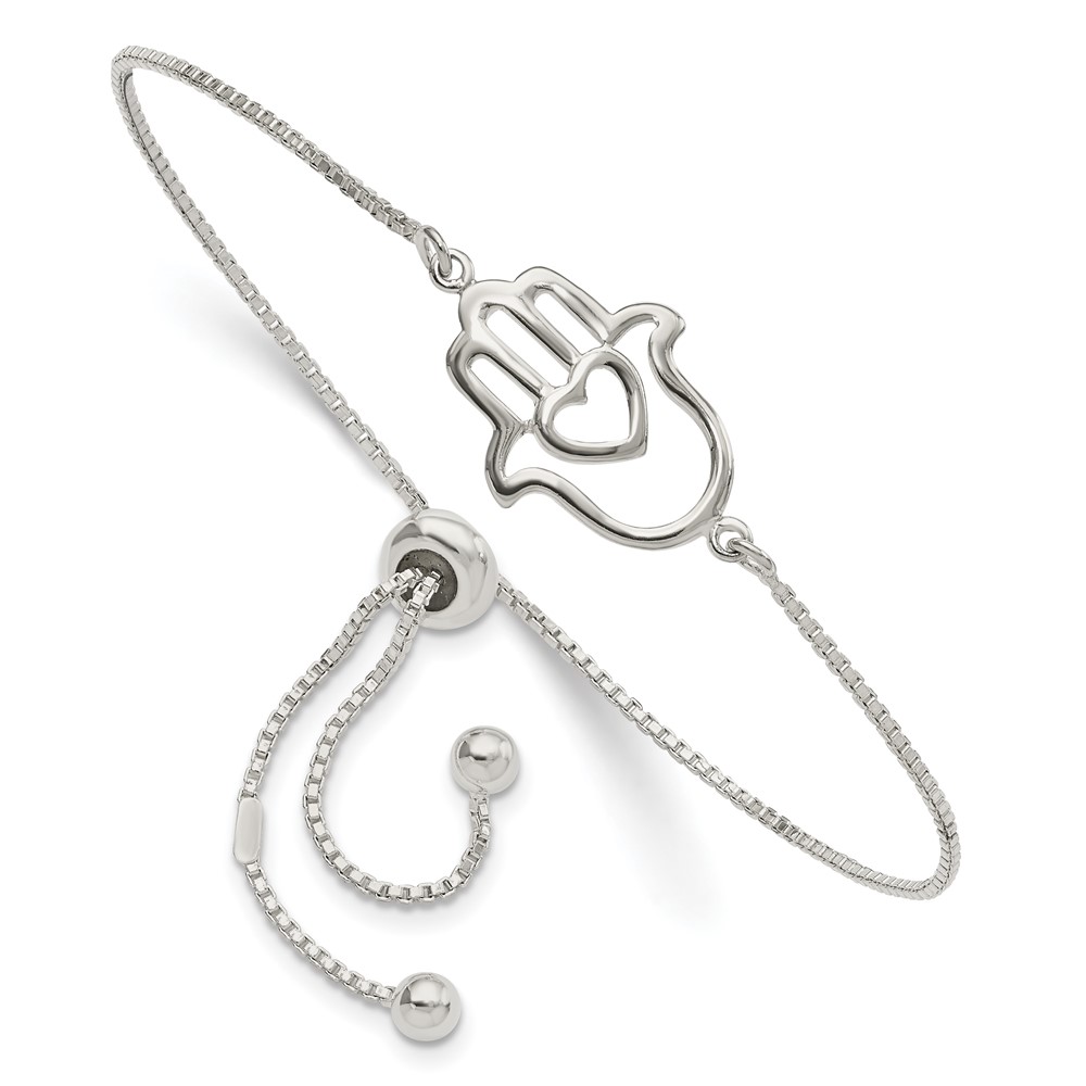Sterling Silver Polished Heart Hamsa Adjustable Bracelet