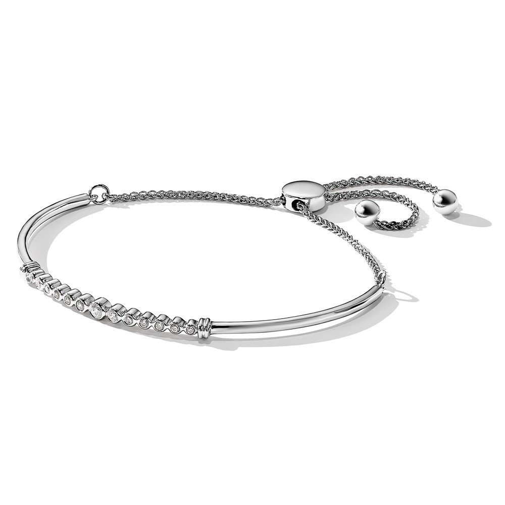 14k White Gold 1/5 carat Lab Grown Diamond VS/SI+ G+ Complete Adjustable Bolo Bracelet