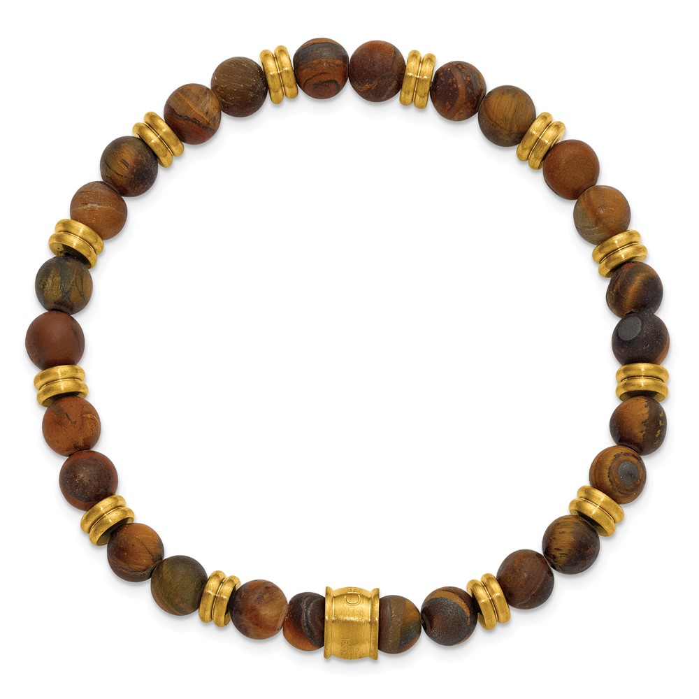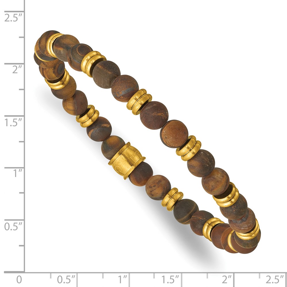 Chisel Stainless Steel Brushed Yellow IP-plated 6.5mm Tiger's Eye Beaded Stretch Bracelet