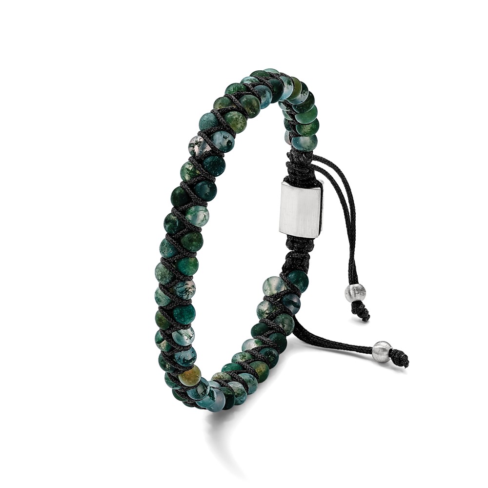 Chisel Stainless Steel Brushed Green Agate Black Nylon Adjustable Bracelet