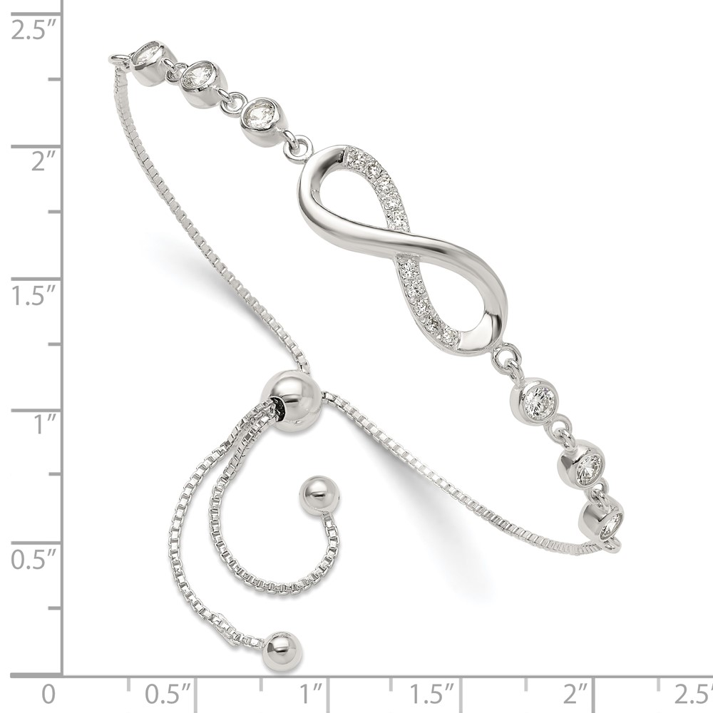 Sterling Silver Polished CZ Infinity Adjustable Bracelet