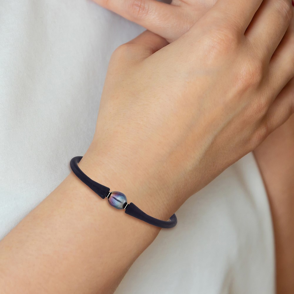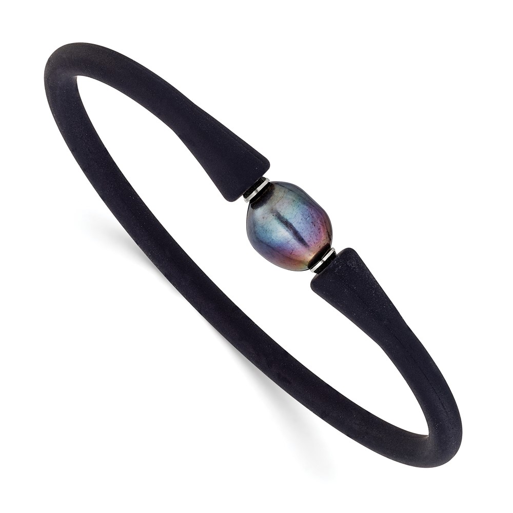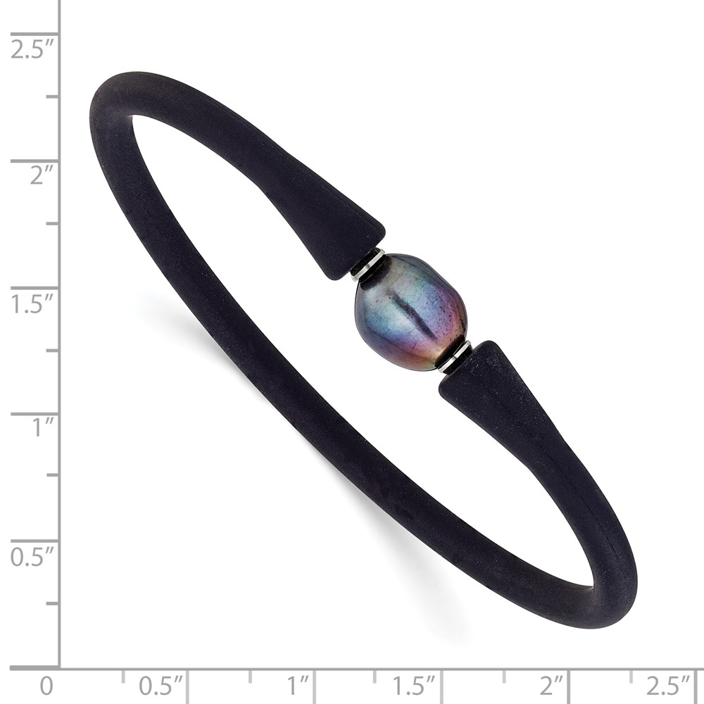 Chisel Stainless Steel Polished 9-10mm Black Baroque Freshwater Cultured Pearl on Black Silicone 6.75 inch Bracelet