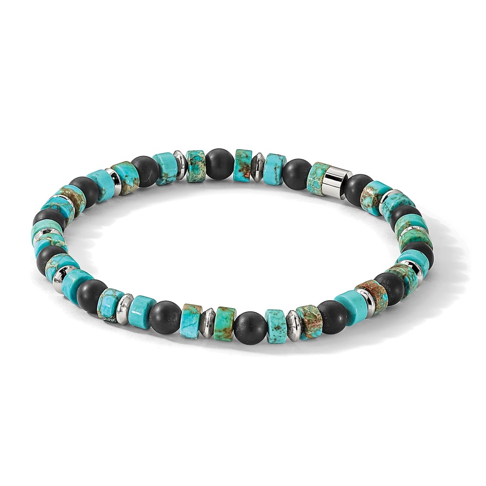 Chisel Stainless Steel Polished 6.30mm Marine-Green Emperor and Onyx Beaded 8 inch Stretch Bracelet