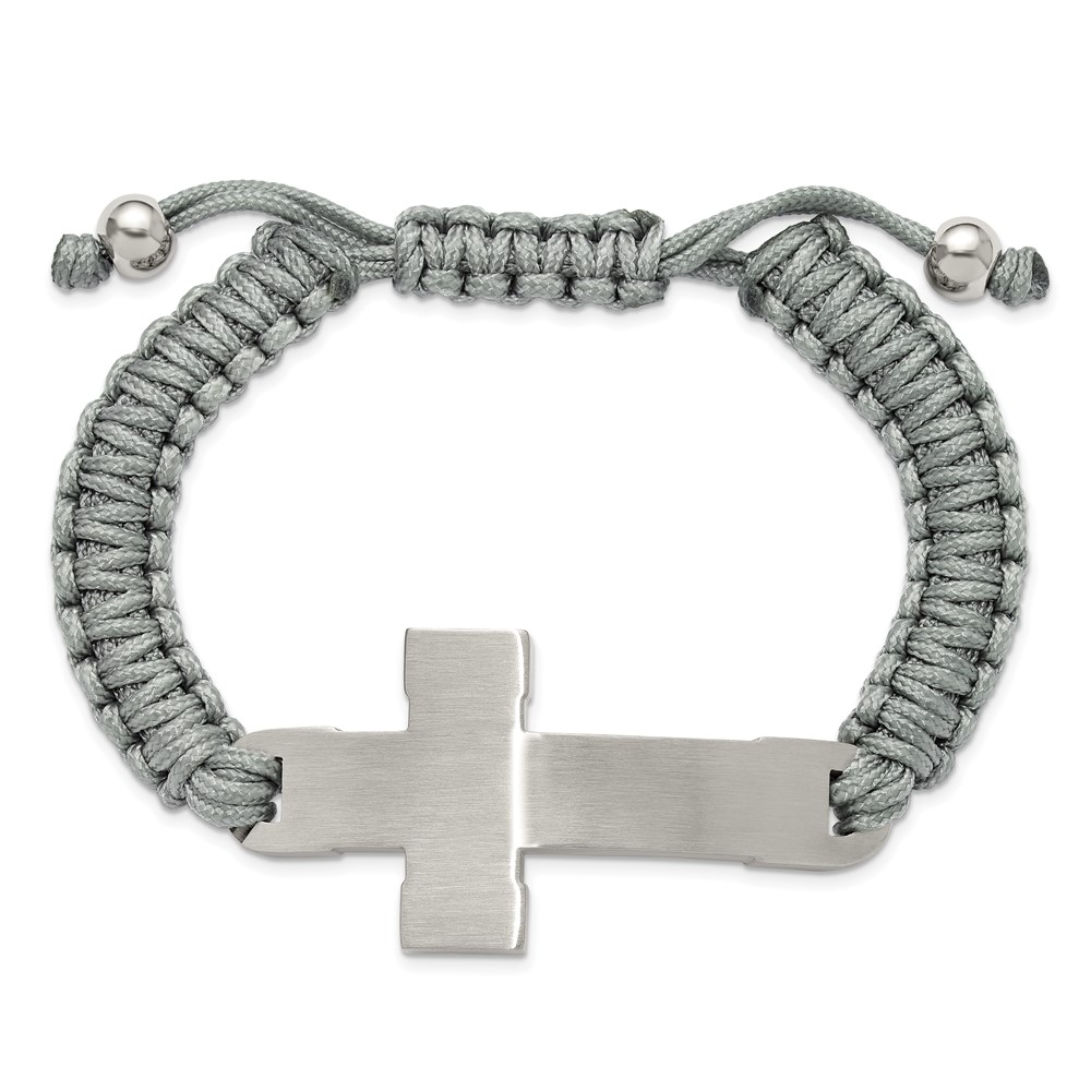 Chisel Stainless Steel Brushed and Polished Cross Grey Nylon 7.5 inch to 10.5 inch Adjustable Bracelet
